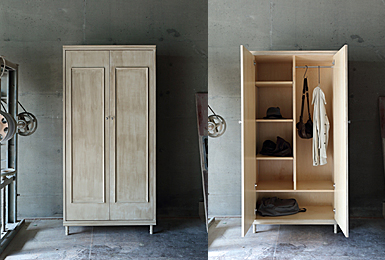 白アンティーク加工のクローゼット・レジカウンター。長年使い込まれた風合いの表情と白の清潔感。