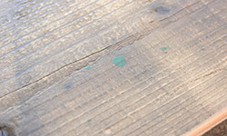 材料は高圧洗浄機で洗った後、ワイヤブラシで木目の中の汚れを落とし、さらに表面をサンドペーパーで削ることで、